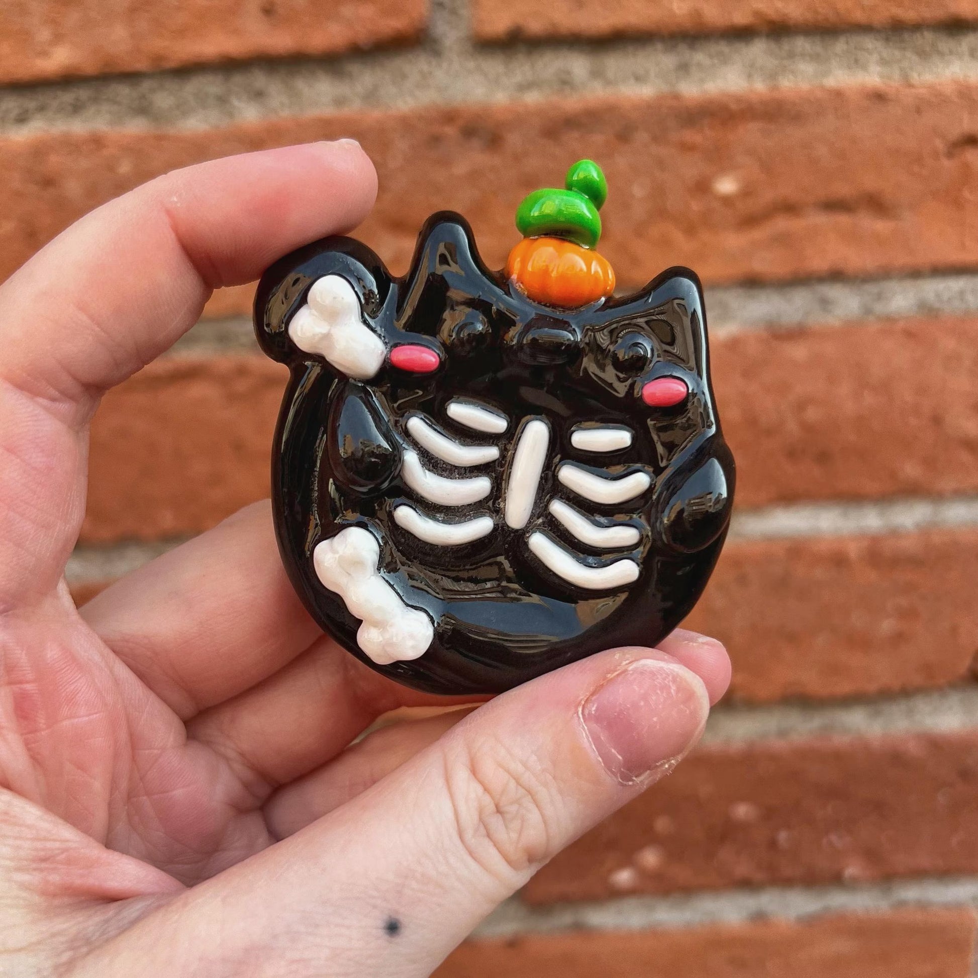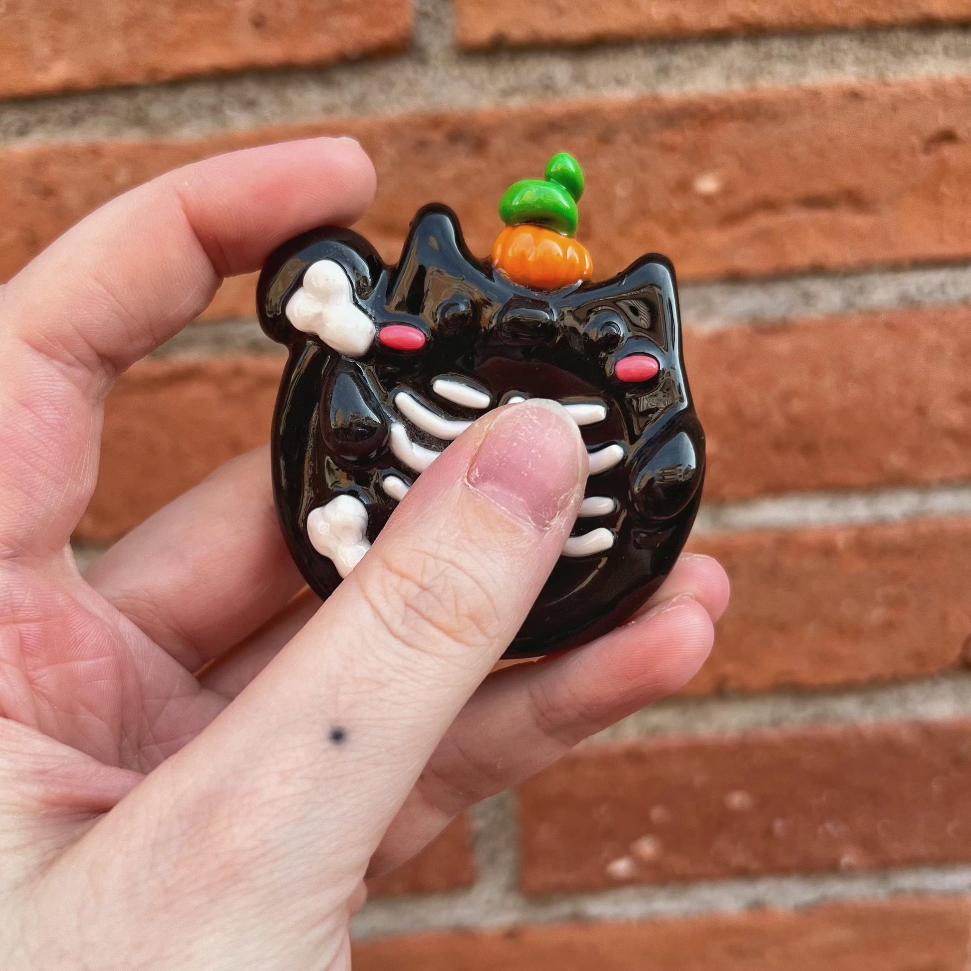 Exitus es el gato negro misterioso de la familia de Halloween, nació bajo el signo de Capricornio. Este felino devoracorazones resucitó durante su propia autopsia, escapando con los huesos del torso al descubierto. Se colocó una calabaza en la cabeza para pasar desapercibido durante la noche de las brujas, ahora está buscando a su nueva víctima.